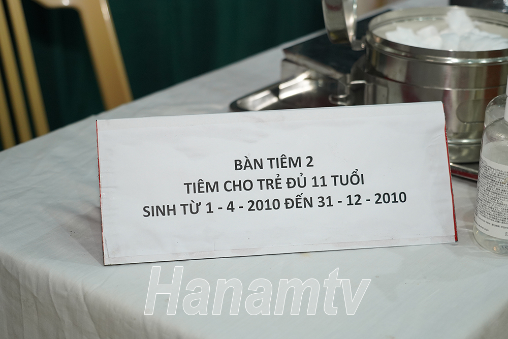 Khám sàng lọc cho các học sinh trước khi tiêm tại điểm tiêm Trường THCS Thi Sơn, huyện Kim Bảng.Giám đốc Sở Y tế Nguyễn Trọng Khải và lãnh đạo Trung tâm Kiểm soát bệnh tật tỉnh trực tiếp kiểm tra công tác tổ chức tiêm chủng từ khâu tư vấn, sàng lọc và tiêm vắc-xin cho trẻ tại điểm tiêm Trường THCS Thi Sơn.Vắc-xin tiêm trong đợt này là vắc-xin Mordena do Bộ Y tế phân bổ cho Hà Nam. Các điểm tiêm đều tổ chức các bàn tiêm riêng biệt cho trẻ đủ 11 tuổi (tiêm liều 0,25ml) và trẻ đủ 12 tuổi (tiêm liều 0,5ml) theo hướng dẫn của Bộ Y tế.Cha mẹ, người thân đưa trẻ đi tiêm được nghe tư vấn, hỗ trợ khám sàng lọc cho trẻ và kiểm tra vắc-xin tiêm cho con em mình tại các điểm tiêm.Các lãnh đạo Sở Y tế và Thành phố Phủ Lý kiểm tra điểm tiêm chủng tại Trường THCS Lương Khánh Thiện.Lãnh đạo Sở Y tế kiểm tra thuốc cấp cứu dự phòng sốc phản vệ do tiêm vắc-xin tại điểm tiêm chủngSau khi được hướng dẫn, tư vấn và trực tiếp tham gia giám sát các bước tiêm chủng, các phụ huynh học sinh yên tâm, tin tưởng đồng thuận cho con tiêm vắc-xin phòng COVID-19.Theo thống kê, toàn tỉnh có tổng số 101.657 trẻ em từ 5 đến dưới 12 tuổi. Hà Nam tổ chức tiêm vắc-xin phòng COVID-19 cho các cháu theo độ tuổi giảm dần, ưu tiên trước cho trẻ đang học lớp 6 - độ tuổi lớn nhất trong đợt tiêm này. Hà Nam phấn đấu hoàn thành tiêm vắc-xin mũi 1 cho trẻ từ 5 đến dưới 12 tuổi trong Quý II/2022.Đối với trẻ đang đi học, các địa phương tổ chức điểm tiêm chủng tại trường học; Đối với trẻ có bệnh nền hoặc các bất thường về sức khỏe sẽ được tiêm tại Trung tâm Y tế các huyện, thị xã, thành phố và các bệnh viện, cơ sở y tế bảo đảm các điều kiện về y tế.