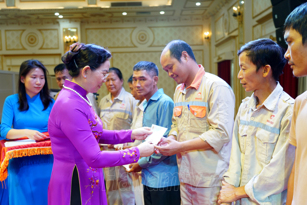 Đồng chí Lê Thị Thủy, Ủy viên Trung ương Đảng, Bí thư Tỉnh ủy, Chủ tịch HĐND tỉnh trao quà cho các đoàn viên, người lao động có hoàn cảnh khó khăn trên địa bàn tỉnh.Đồng chí Bí thư Tỉnh ủy Lê Thị Thủy và đồng chí Phó Chủ tịch Tổng LĐLĐ Việt Nam Phan Văn Anh trao quà cho đoàn viên, người lao động có hoàn cảnh khó khăn Các đồng chí lãnh đạo tỉnh Hà Nam, lãnh đạo LĐLĐ tỉnh trao quà cho các đoàn viên, người lao động có hoàn cảnh khó khăn trên địa bàn