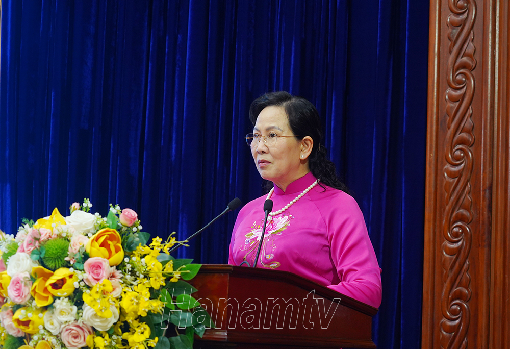 Đồng chí Lê Thị Thủy, Ủy viên Trung ương Đảng, Bí thư Tỉnh ủy, Chủ tịch HĐND tỉnh phát biểu khai mạc hội nghị.