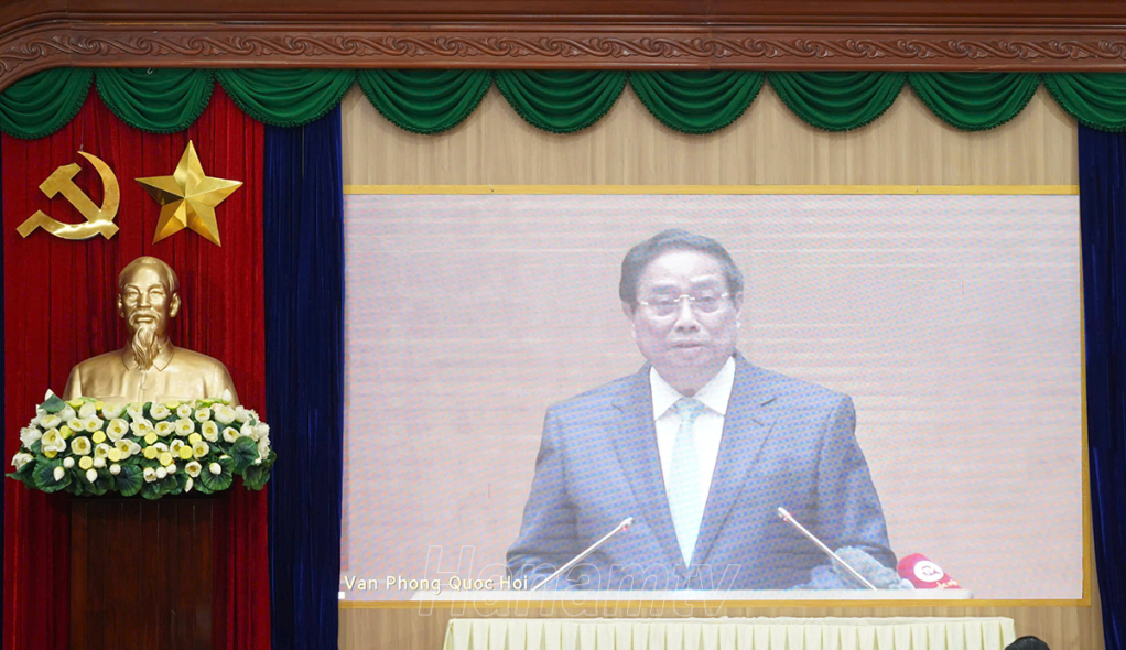 Thủ tướng Phạm Minh Chính quán triệt nội dung KT-XH tại hội nghị. (Ảnh chụp màn hình trực tuyến)