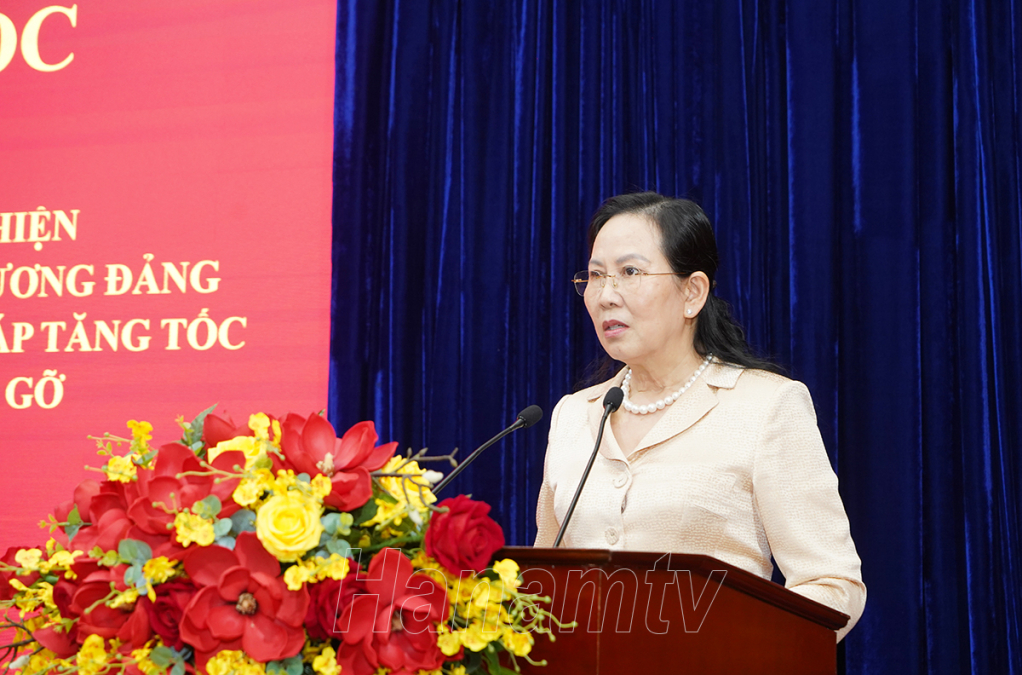Quán triệt tinh thần chỉ đạo của Trung ương, phát biểu chỉ đạo tại hội nghị tại điểm cầu trung tâm tỉnh đồng chí Lê Thị Thủy, Ủy viên Trung ương Đảng, Bí thư Tỉnh ủy, Chủ tịch HĐND tỉnh nhấn mạnh: Các chuyên đề được quán triệt tại hội nghị là những nội dung có ý nghĩa hết sức quan trọng, vì vậy, sau hội nghị này, đề nghị các cấp ủy đảng, tổ chức đảng, chính quyền, MTTQ và các tổ chức chính trị xã hội, các cơ quan, đơn vị, địa phương cần tiếp tục đẩy mạnh quán triệt, tuyên truyền nâng cao nhận thức của cán bộ, đảng viên, công chức, viên chức và các tầng lớp nhân dân, tạo sự thống nhất về tư tưởng, hành động trong toàn đảng bộ và cả hệ thống chính trị của tỉnh, tạo sự đồng thuận trong nhân dân.