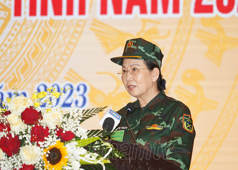 Đồng chí Lê Thị Thủy, Ủy viên Trung ương Đảng, Bí thư Tỉnh ủy, Chủ tịch HĐND tỉnh, Bí thư Đảng ủy Quân sự tỉnh, Trưởng BCĐ diễn tập tỉnh phát biểu bế mạc diễn tập.