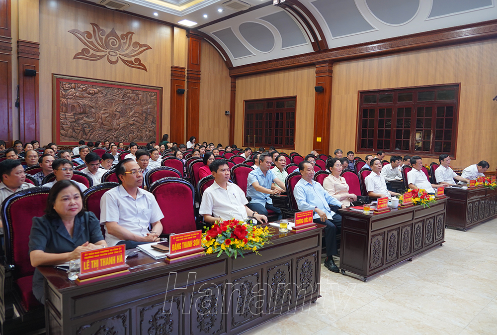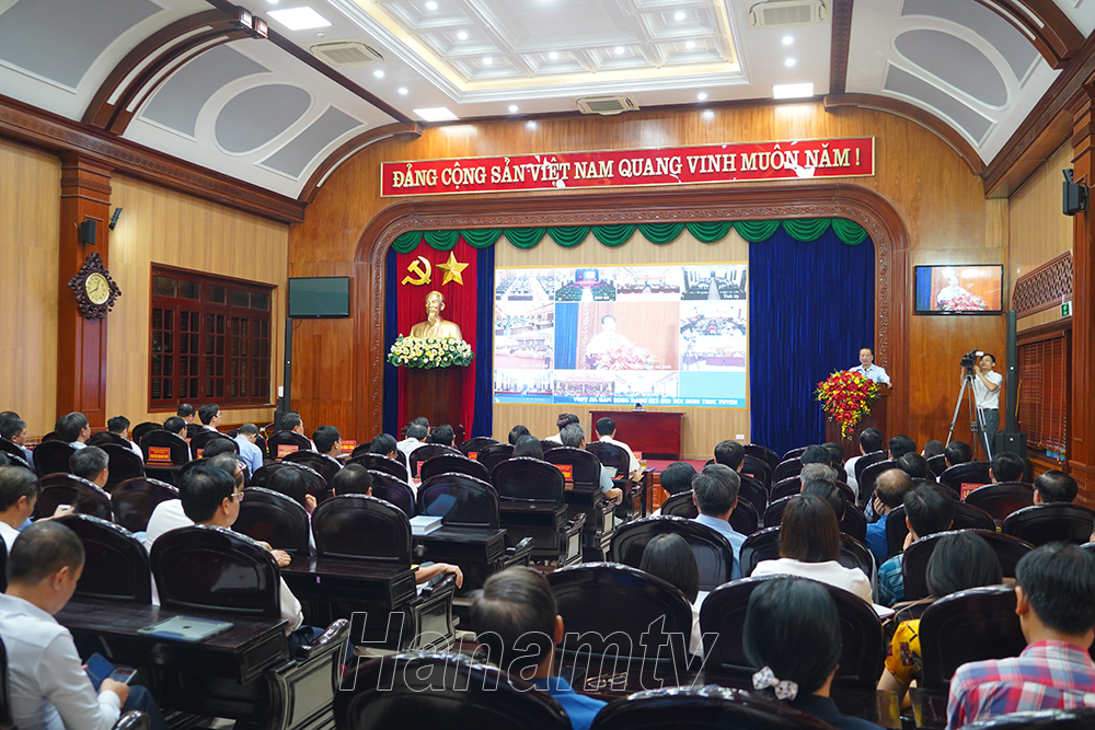Sáng 23/4, Tỉnh ủy Hà Nam tổ chức hội nghị bồi dưỡng lý luận chính trị, cập nhật kiến thức mới về giá trị, ý nghĩa, nội dung bài viết “Tự hào và tin tưởng dưới lá cờ vẻ vang của Đảng, quyết tâm xây dựng một nước Việt Nam ngày càng giàu mạnh, văn minh, văn hiến và anh hùng” của Tổng Bí thư Nguyễn Phú Trọng cho cán bộ lãnh đạo, quản lý chủ chốt của tỉnh. Hội nghị được tổ chức bằng hình thức trực tiếp kết hợp trực tuyến từ tỉnh đến cơ sở với tổng cộng 246 điểm cầu và trên 41.500 cán bộ, đảng viên dự học.