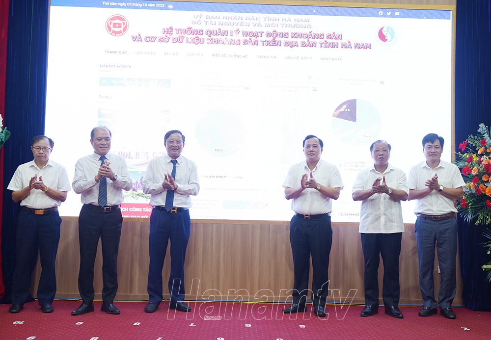 Các đại biểu bấm nút khai trương đưa vào vận hành Nền tảng tích hợp, chia sẻ dữ liệu (LGSP) tỉnh Hà NamCác đại biểu bấm nút khai trương đưa vào vận hành Hệ thống quản lý hoạt động khoáng sản và cơ sở dữ liệu khoáng sản trên địa bàn tỉnh Hà Nam.