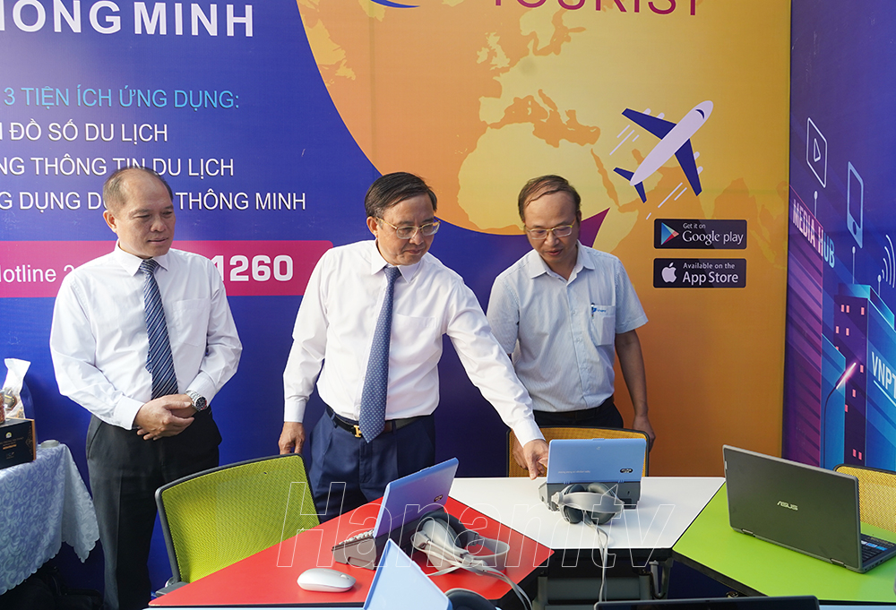 Các đại biểu trải nghiệm ứng dụng du lịch thông minh của Tổng công ty Mobifone