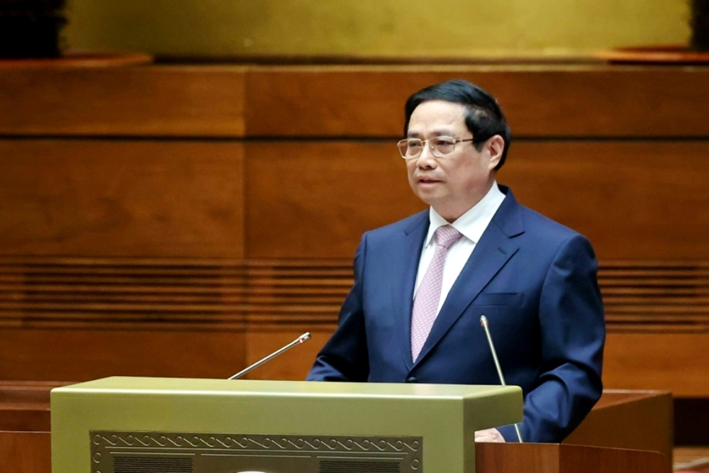 Thủ tướng Chính phủ Phạm Minh Chính truyền đạt Nghị quyết số 42-NQ/TW của BCH Trung ương Đảng về “Tiếp tục đổi mới, nâng cao chất lượng chính sách xã hội, đáp ứng yêu cầu sự nghiệp xây dựng và bảo vệ Tổ quốc trong giai đoạn mới”.(Ảnh: Báo QĐND)
