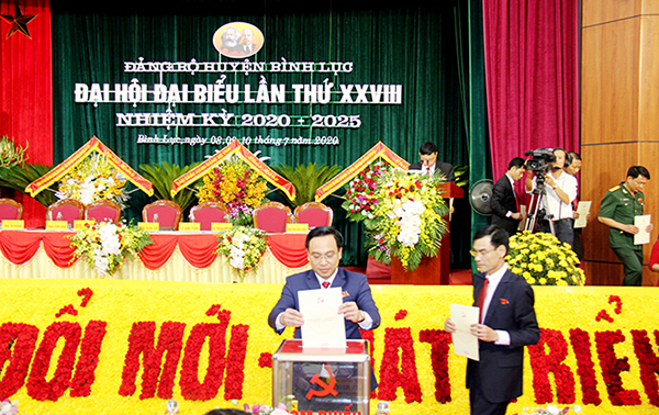Đại hội bầu Ban chấp hành Đảng bộ huyện khóa XXVIII, bầu trực tiếp Bí thư Huyện ủy Bình Lục tại Đại hội Theo chương trình làm việc, ngày 10/7, Đại hội tiếp tục làm việc để hoàn thành các nội dung: bầu đoàn Đại biểu đi dự Đại hội Đại biểu đảng bộ tỉnh Hà Nam lần thứ XX, nhiệm kỳ 2020-2025, thông qua Nghị quyết, chương trình hành động và Bế mạc Đại hội./. Hoa Hiên