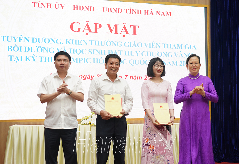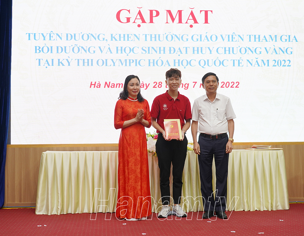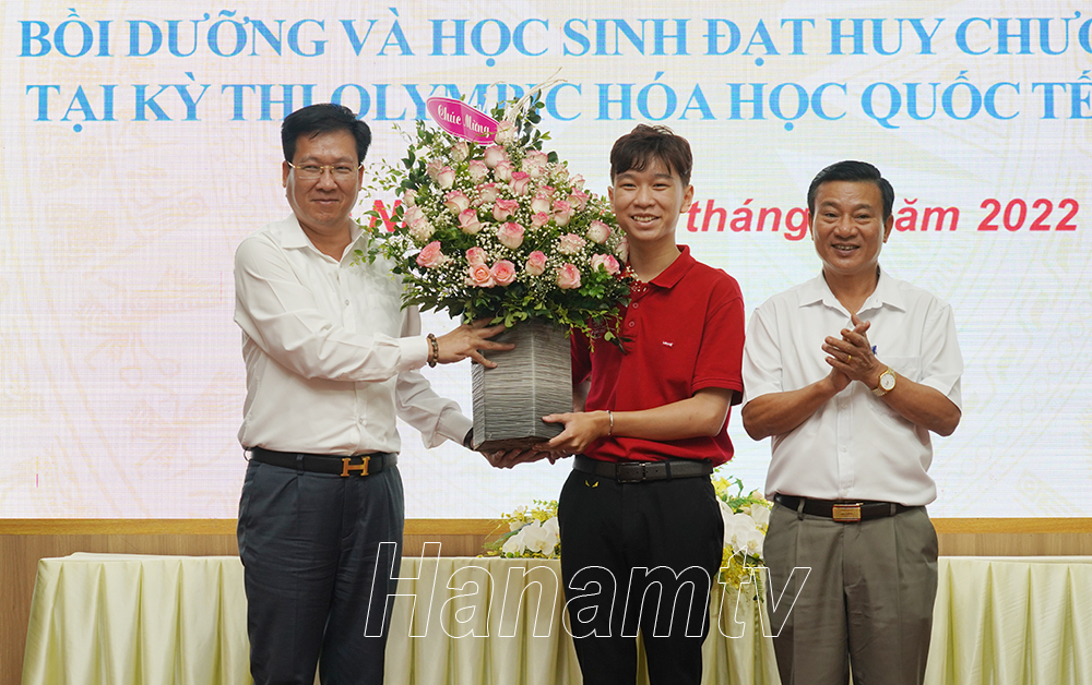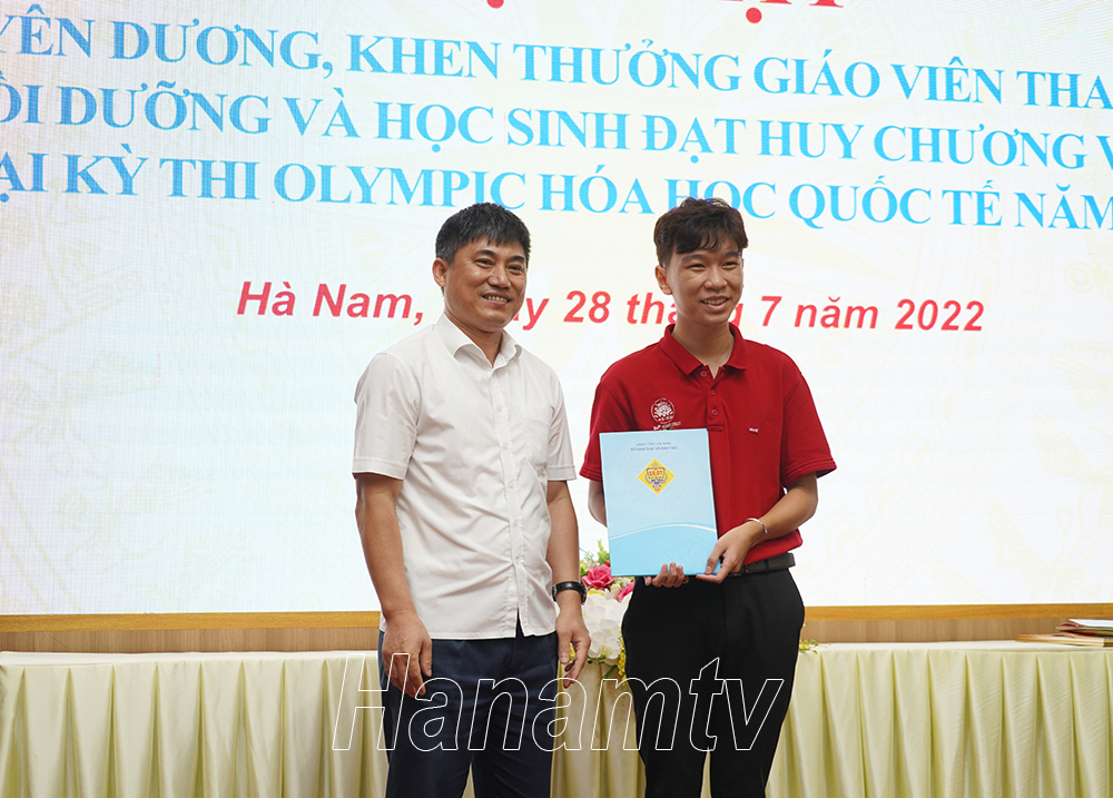 Tại buổi lễ, các đồng chí Thường trực Tỉnh ủy, lãnh đạo UBND tỉnh đã trao tặng Bằng khen của UBND tỉnh và các phần quà cho em Trần Đức Minh và các thầy cô giáo đội tuyển Hóa học của Trường THPT Chuyên Biên Hòa trực tiếp tham gia bồi dưỡng em Minh. Lãnh đạo Sở Giáo dục và Đạo tạo, Hội Khuyến học tỉnh và lãnh đạo Huyện ủy, UBND huyện Bình Lục cũng trao tặng các phần quà động viên, khích lệ em Trần Đức Minh và các thầy cô giáo.