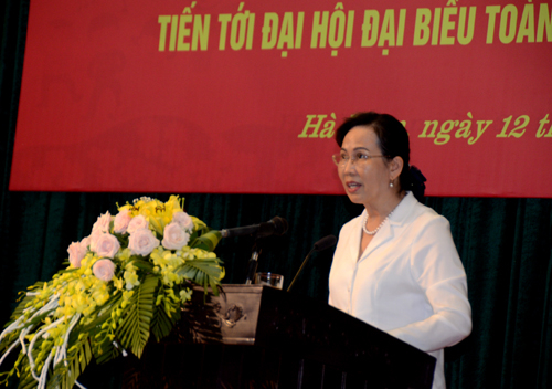 Đồng chí Lê Thị Thủy- Ủy viên TW Đảng, Bí thư Tỉnh ủy phát biểu tại hội nghị Phát biểu tại hội nghị, đồng chí Bí thư Tỉnh ủy Lê Thị Thủy nhấn mạnh, Đại hội đảng bộ các cấp là đợt sinh hoạt chính trị sâu rộng trong toàn Đảng, toàn dân và toàn quân. Việc chuẩn bị và tổ chức Đại hội Đảng các cấp là một trong những nhiệm vụ quan trọng từ nay đến hết nhiệm kỳ. Do vậy, đồng chí Bí thư Tỉnh ủy đề nghị các cấp ủy và người đứng đầu Cấp ủy, tổ chức Đảng phải đề cao hơn nữa trách nhiệm trước Đảng, trước nhân dân, tập trung lãnh đạo, chỉ đạo thực hiện tốt các nhiệm vụ được giao.
