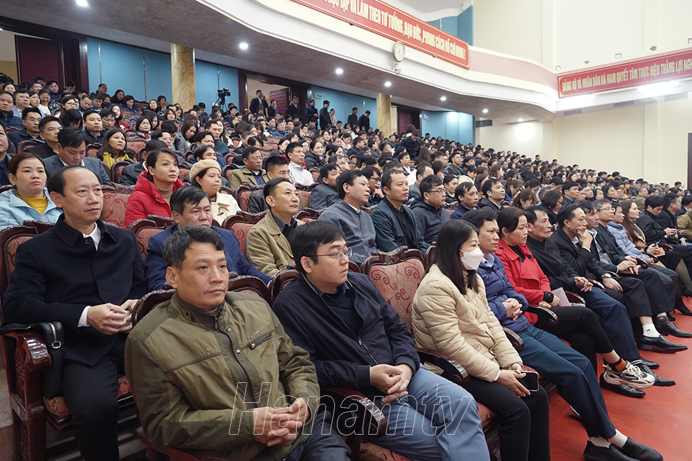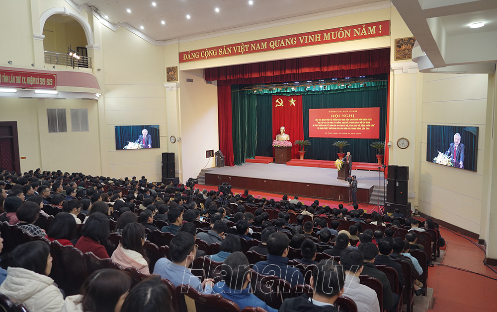 Sáng 29/2, Tỉnh ủy Hà Nam tổ chức hội nghị học tập, quán triệt, triển khai thực hiện chuyên đề năm 2024-2025: “Học tập và làm theo tư tưởng, đạo đức, phong cách Hồ Chí Minh về phát triển kinh tế, đảm bảo an sinh xã hội, nâng cao đời sống nhân dân” và quán triệt, triển khai một số văn bản của Trung ương, của tỉnh. Hội nghị được phát thanh, truyền hình trực tiếp trên sóng của Đài Phát thanh và Truyền hình Hà Nam từ tỉnh đến cơ sở với 540 điểm cầu truyền hình, phục vụ gần 42.000 cán bộ, đảng viên trong toàn tỉnh tham gia học tập.