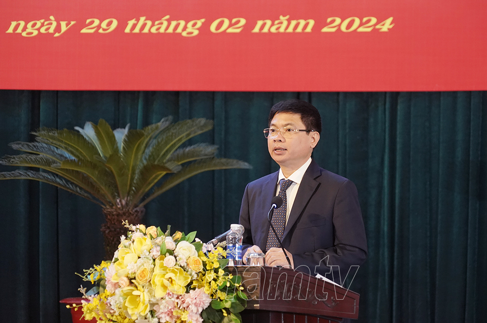 Đồng chí Trương Quốc Huy, Phó Bí thư Tỉnh ủy, Chủ tịch UBND tỉnh, Trưởng Đoàn đại biểu Quốc hội tỉnh quán triệt: Chỉ thị số 28-CT/TW ngày 25/12/2023 của Bộ Chính trị về tăng cường công tác chăm sóc, giáo dục và bảo vệ trẻ em đáp ứng yêu cầu phát triển đất nước phồn vinh, hạnh phúc; Nghị quyết số 43-NQ/TU ngày 26/12/2023 của Tỉnh ủy về nhiệm vụ phát triển kinh tế - xã hội năm 2024. Đồng chí Đặng Thanh Sơn, Ủy viên BTV Tỉnh ủy, Phó Chủ tịch Thường trực HĐND tỉnh quán triệt Nghị quyết số 40-NQ/TU ngày 15/12/2023 của Tỉnh ủy về lãnh đạo hoạt động của HĐND tỉnh từ năm 2024 đến hết nhiệm kỳ Đại hội Đảng bộ tỉnh lần thứ XX; Đồng chí Đào Đình Tùng, Ủy viên BTV Tỉnh ủy, Trưởng Ban Nội chính Tỉnh ủy quán triệt Chỉ thị số 27-CT/TW ngày 25/12/2023 của Bộ Chính trị về tăng cường sự lãnh đạo của Đảng đối với công tác thực hành tiết kiệm, chống lãng phí.