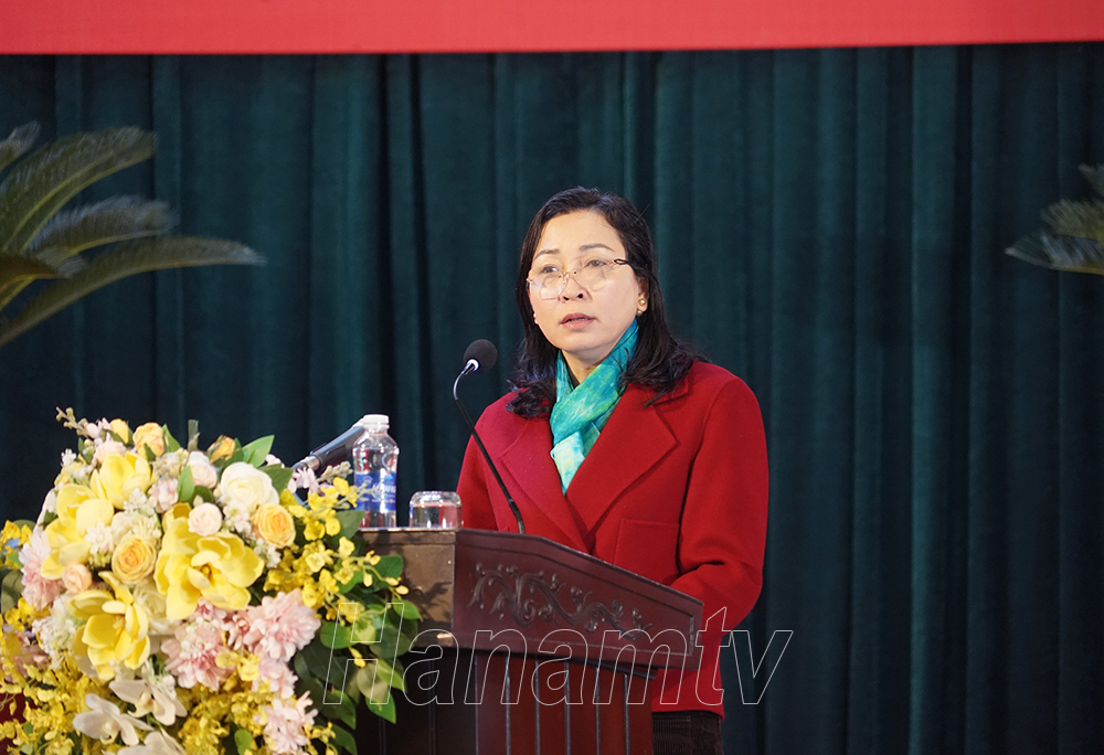 Tiếp đó đồng chí Lê Thị Thanh Hà, Ủy viên BTV Tỉnh ủy, Trưởng Ban Tuyên giáo Tỉnh ủy phát biểu hướng dẫn việc triển khai thực hiện hiệu quả Kết luận số 01-KL/TW của Bộ Chính trị và Chuyên đề năm 2024-2025.
