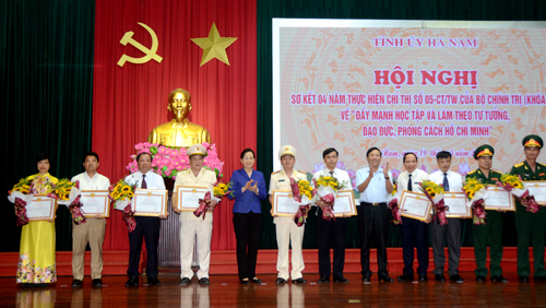 Biểu dương và đánh giá cao những những tập thể, cá nhân có thành tích xuất sắc trong học tập và làm theo Bác, đồng chí Lê Thị Thủy, Ủy viên TW Đảng, Bí thư Tỉnh ủy đề nghị, thời gian tới các cấp, các ngành, địa phương, đơn vị cần tiếp tục tuyên truyền, quán triệt nâng cao nhận thức cho cán bộ, đảng viên và các tầng lớp nhân dân về ý nghĩa thiết thực, tầm quan trọng của việc học tập và làm theo tư tưởng, đạo đức, phong cách Hồ Chí Minh; gắn chặt việc thực hiện Chỉ thị 05-CT/TW với việc thực hiện các Nghị quyết Trung ương, nhất là Nghị quyết Trung ương 4 khóa XI, XII; nỗ lực học và làm theo gương Bác bằng những việc làm cụ thể, thiết thực, có trọng tâm, trọng điểm và gắn với thực hiện các phong trào thi đua yêu nước, nhiệm vụ phát triển kinh tế - xã hội, đảm bảo quốc phòng, an ninh, xây dựng Đảng và hệ thống chính trị vững mạnh.