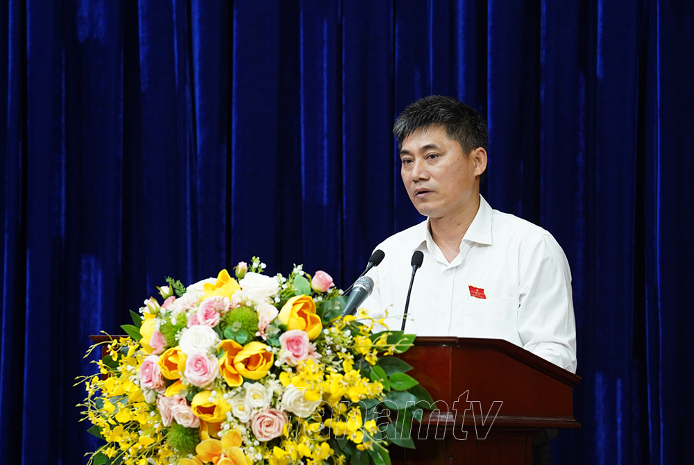 Giám đốc Sở Lao động, Thương binh và Xã hội Nguyễn Văn Hảo trả lời ý kiến, kiến nghị của cử tri và chất vấn của đại biểu HĐND tỉnh.Đại biểu Đinh Văn An (tổ đại biểu Lý Nhân) nêu câu hỏi chất vấn lãnh đạo Sở Lao động, Thương binh và Xã hội.
