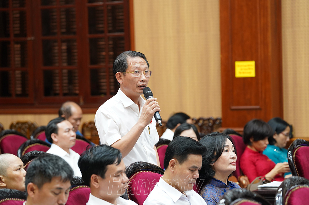 Giám đốc Sở Tài nguyên và Môi trường (TN&MT) Phạm Chí Thống trả lời ý kiến, kiến nghị của cử tri về các nhóm vấn đề quản lý đất đai và bảo vệ môi trường. Cụ thể, cử tri đề nghị tỉnh xem xét, đánh giá, so sánh giá đất cụ thể tại các tuyến đường, ngõ xóm được quy định hiện nay để tính thuế đất cho phù hợp và sát với tình hình thực tế; các sở, ngành của tỉnh xem xét cho ý kiến về cơ chế để thực hiện bồi thường, hỗ trợ GPMB đối với các hộ sản xuất đa canh được phê duyệt, hộ tự ý chuyển đổi mô hình sản xuất đa canh nằm trong vùng quy hoạch đa canh nhưng chưa có đề án được cấp có thẩm quyền phê duyệt (trước thời điểm 05/9/2012); giải quyết cấp giấy chứng nhận quyền sử dụng đất đối với diện tích đất dịch vụ 5%, 7% trên địa bàn thành phố Phủ Lý theo các văn bản quy định của tỉnh; xem xét, tạo điều kiện cho nhân dân được chuyển mục đích sử dụng đất nông nghiệp sang đất ở đối với các thửa đất nông nghiệp nhỏ lẻ, xen kẹp trong khu dân cư phù hợp với các quy hoạch của địa phương; có giải pháp triển khai việc chia tách đất cho các hộ có nhu cầu theo quy định. Kiểm tra, giám sát các hoạt động của một số nhà máy xi măng và công ty khai thác chế biến đá, đốt nung vôi trên địa bàn xả thải khói bụi, gây tiếng ồn làm ô nhiễm môi trường ảnh hưởng đến đời sống, sức khỏe của nhân dân; giải quyết vấn đề ô nhiễm môi trường nguồn nước sông Sắt, sông S17 do chất thải chăn nuôi gây ra; biện pháp xử lý dứt điểm tình trạng ô nhiễm khu xử lý nước thải tập trung làng nghề dệt nhuộm xã Hoà Hậu; xem xét điều chỉnh giá đất khi bồi thường, hỗ trợ và tái định cư khi nhà nước thu hồi đất …..