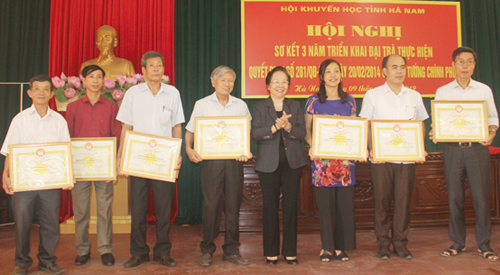 Tại hội nghị, 37 tập thể, cá nhân có thành tích xuất sắc trong thực hiện Quyết định 281 của Thủ tướng Chính phủ được tặng Bằng khen của Trung ương Hội khuyến học Việt Nam, UBND tỉnh và giấy khen của Hội khuyến học tỉnh. PV
