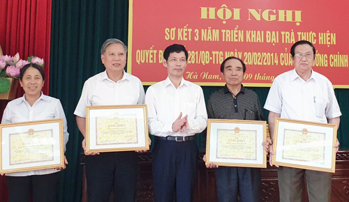 Đồng chí Bùi Quang Cẩm, Tỉnh ủy viên, Phó Chủ tịch UBND tỉnh trao bằng khen của UBND tỉnh cho các tập thể có thành tích xuất sắc trong thực hiện QĐ 281