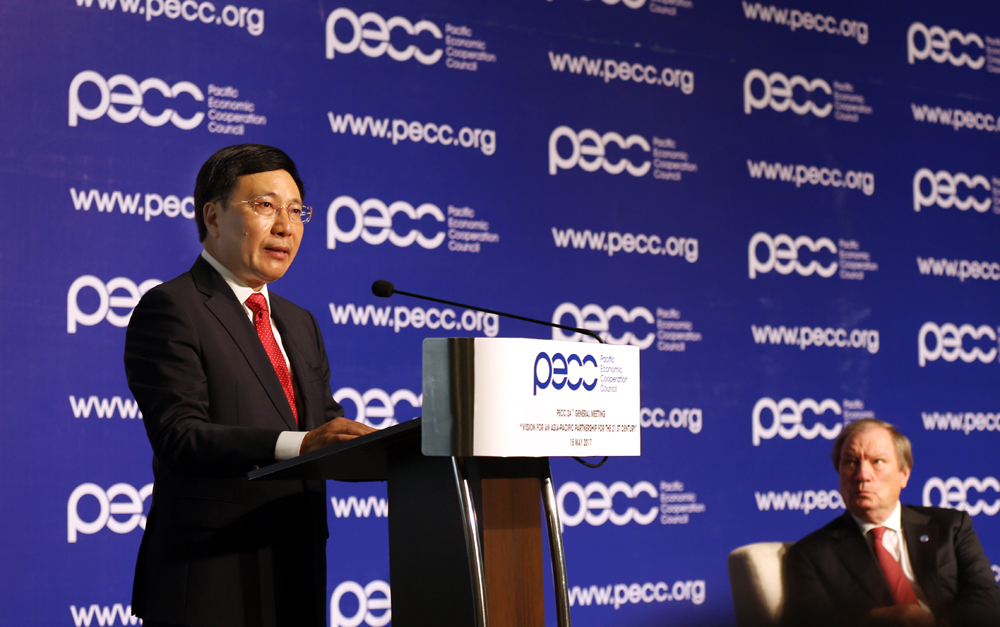 Đó là phát biểu của Phó Thủ tướng, Bộ trưởng Bộ Ngoại giao Phạm Bình Minh tại Hội nghị toàn thể lần thứ 24 Hội đồng hợp tác kinh tế Thái Bình Dương, diễn ra sáng 15/5 tại Hà Nội.