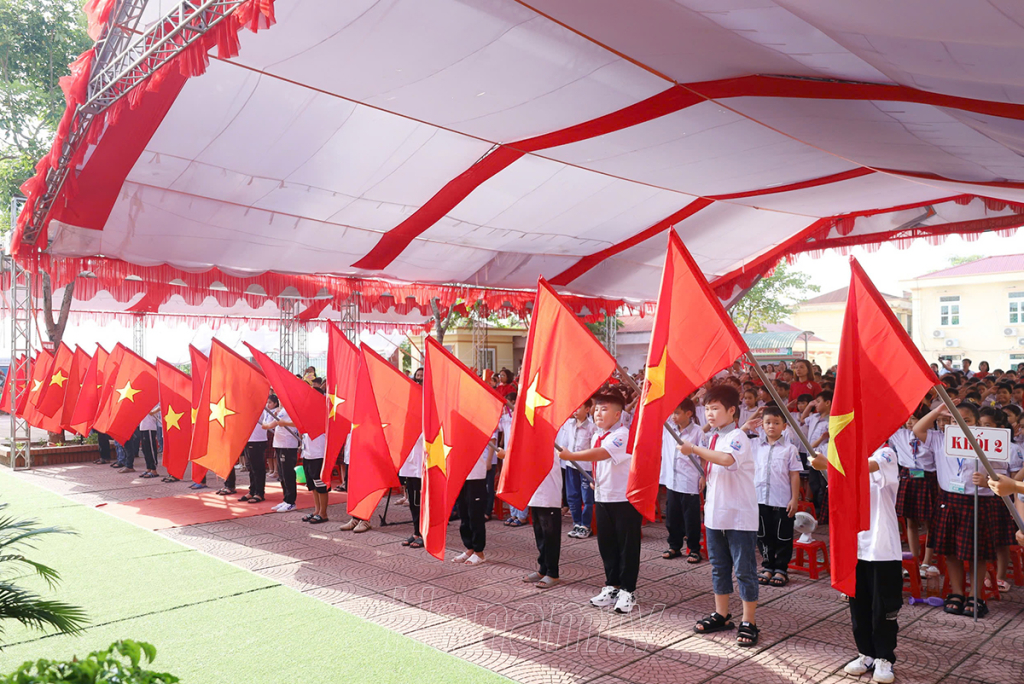 Các học sinh Trường Tiểu học Thị trấn Bình Mỹ, huyện Bình Lục thực hiện nghi lễ chào cờ trong lễ khai giảng năm học mới.Với chủ đề “Kỷ cương trách nhiệm, đổi mới không ngừng, nâng cao chất lượng”, năm học 2024-2025, ngành giáo dục Hà Nam đặt ra 11 nhiệm vụ trọng tâm.Ngành Giáo dục chú trọng giáo dục nhân cách, lối sống, kiến thức pháp luật và đạo đức; vun đắp lòng nhân ái, kính thầy, yêu bạn, phát triển toàn diện cả “trí” và “đức” cho học sinh, để các em phát triển toàn diện, mai sau trở thành những “công dân tương lai”, cống hiến nhiều hơn cho gia đình, quê hương, đất nước.