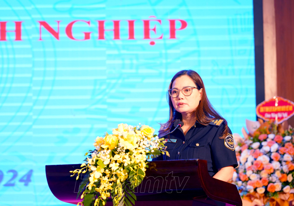 Đồng chí Nguyễn Thu Nhiễu, Cục trưởng Cục Hải quan Hà Nam Ninh phát biểu tại hội nghị