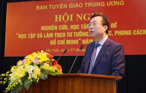 Sáng 17-12, Ban Tuyên giáo Trung ương tổ chức hội nghị nghiên cứu, triển khai chuyên đề học tập và làm theo tư tưởng, đạo đức, phong cách Hồ Chí Minh năm 2020 “Tăng cường khối đại đoàn kết toàn dân tộc, xây dựng Đảng và hệ thống chính trị trong sạch, vững mạnh theo tư tưởng, đạo đức, phong cách Hồ Chí Minh”.