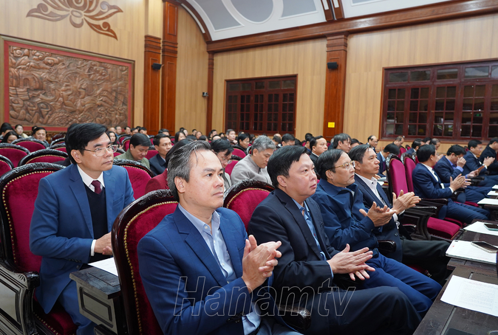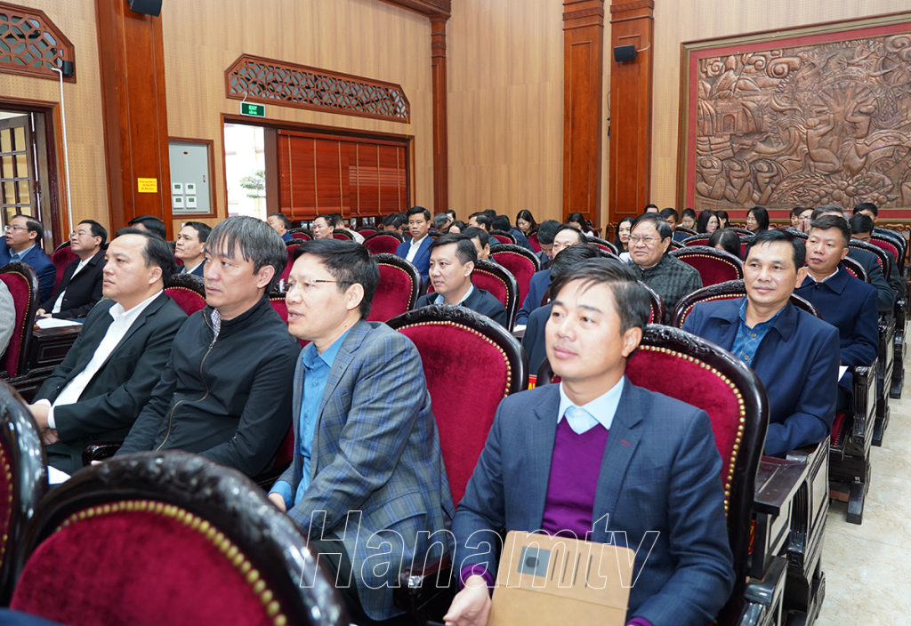 Các đại biểu dự hội nghị tại điểm cầu trung tâm tỉnh Hà Nam.