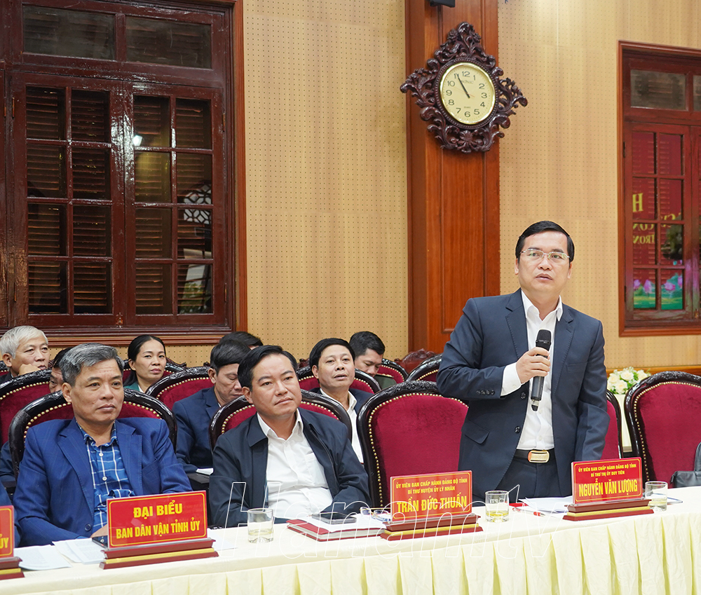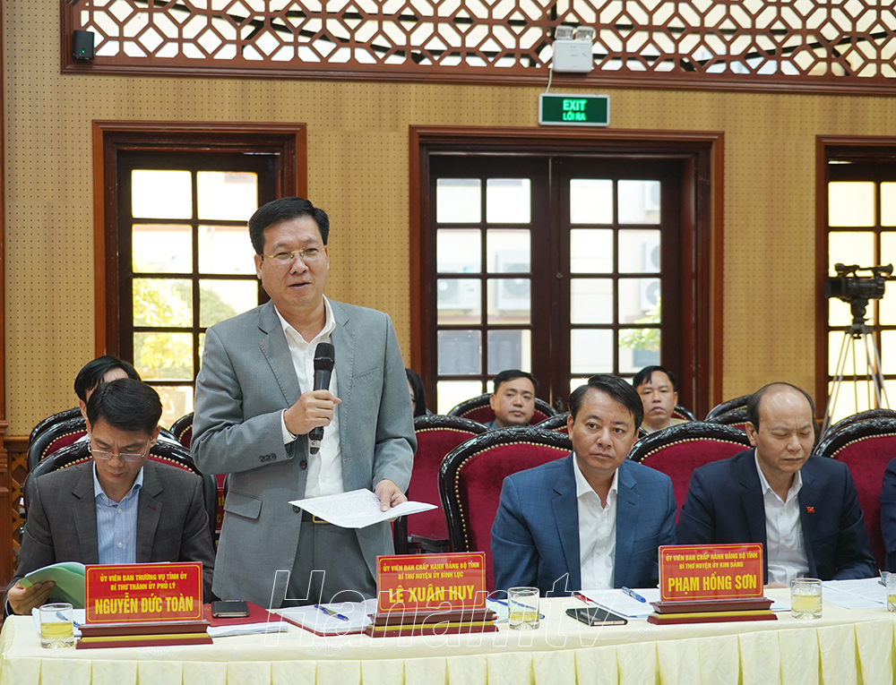 Đồng chí Lê Xuân Huy, Tỉnh ủy viên, Bí thư Huyện ủy Bình Lụcphát biểu tham luận tại Hội thảo.