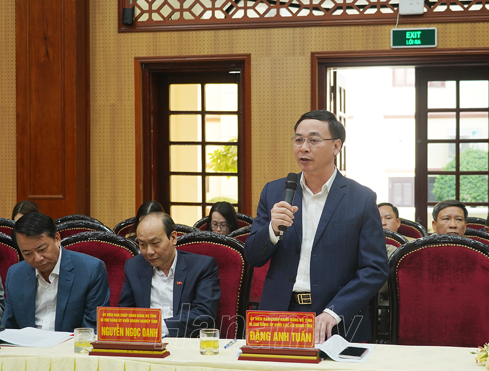 Đồng chi Đặng Anh Tuấn, Tỉnh ủy viên, Bí thư Đảng ủy Khối các cơ quan tỉnh phát biểu tham luận tại Hội thảo.