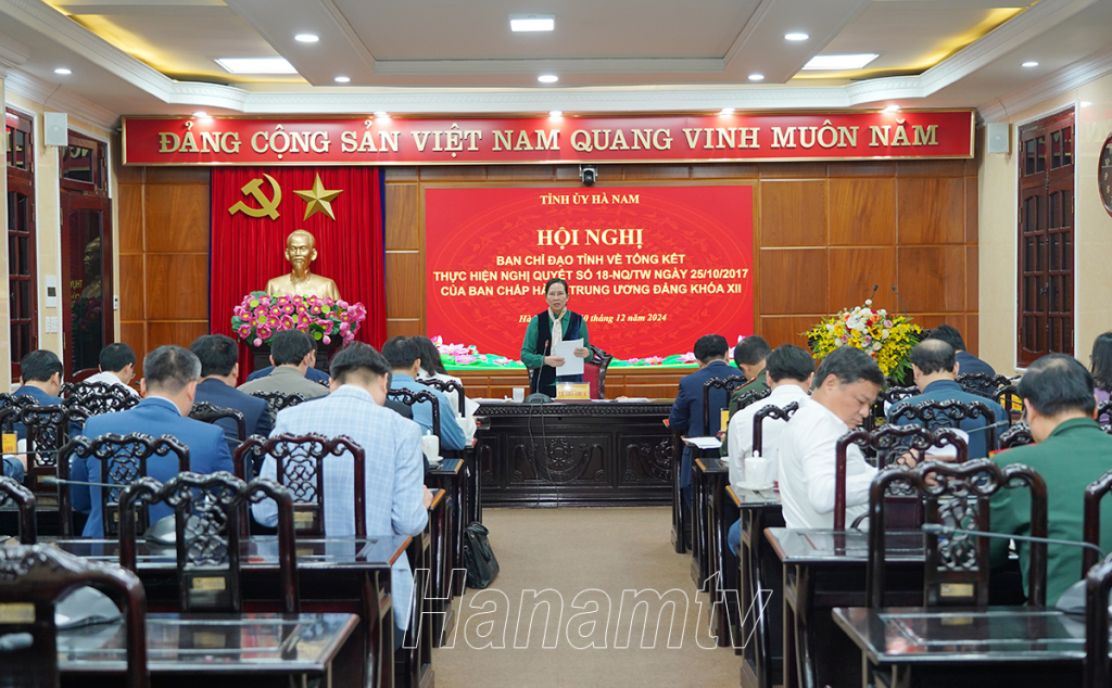 Chiều 10/12, Ban Chỉ đạo (BCĐ) tỉnh về tổng kết thực hiện Nghị quyết 18-NQ/TW ngày 25/10/2017 của Ban Chấp hành Trung ương Đảng khoá XII “Một số vấn đề về tiếp tục đổi mới, sắp xếp tổ chức bộ máy của hệ thống chính trị tinh gọn, hoạt động hiệu lực, hiệu quả” tổ chức hội nghị đóng góp ý kiến vào dự thảo Đề án sắp xếp tổ chức bộ máy của hệ thống chính trị tỉnh Hà Nam. Đồng chí Lê Thị Thủy, Ủy viên Trung ương Đảng, Bí thư Tỉnh ủy, Chủ tịch HĐND tỉnh, Trưởng BCĐ chủ trì hội nghị.