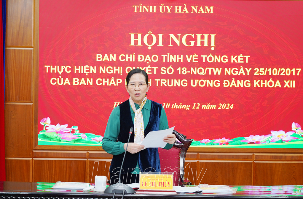 Trên cơ sở các ý kiến thảo luận của các đại biểu tại hội nghị, phát biểu chỉ đạo, đồng chí Bí thư Tỉnh ủy Lê Thị Thủy, Trưởng BCĐ tỉnh về thực hiện tổng kết Nghị quyết 18 yêu cầu các địa phương, cơ quan, đơn vị cần tập trung giải quyết yêu cầu, nhiệm vụ trọng tâm, cấp bách, đặc biệt là triển khai thực hiện khẩn trương, hiệu quả "cuộc cách mạng tinh gọn tổ chức bộ máy của cả hệ thống chính trị" theo tinh thần Nghị quyết số 18-NQ/TW (khóa XII).