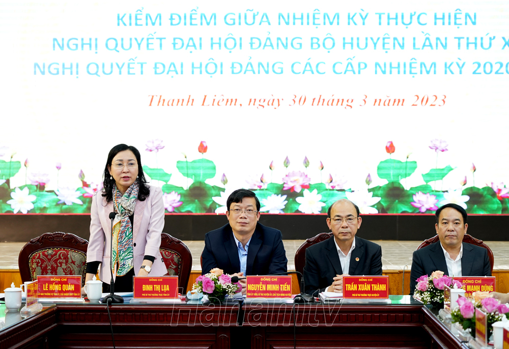 Phát biểu chỉ đạo hội nghị, đồng chí Phó Bí thư Thường trực Tỉnh ủy Đinh Thị Lụa ghi nhận, đánh giá cao những kết quả Đảng bộ, chính quyền và nhân dân huyện Thanh Liêm đạt được trong nửa nhiệm kỳ qua.