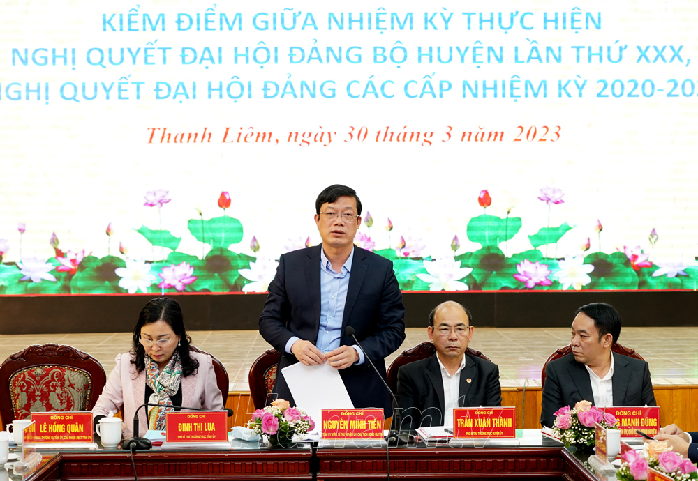 Tại hội nghị, các đại biểu thống nhất đánh giá: Nửa đầu thực hiện NQ Đại hội Đảng bộ huyện lần thứ XXX, NQ Đại hội Đảng các cấp trong bối cảnh gặp nhiều khó khăn do dịch Covid – 19 bùng phát, kinh tế suy thoái, song Ban Chấp hành, Ban Thường vụ (BTV) Huyện ủy Thanh Liêm đã đoàn kết, nêu cao tinh thần trách nhiệm, thực hiện nghiêm túc sự lãnh đạo, chỉ đạo của Tỉnh ủy, HĐND, UBND tỉnh, tập trung lãnh đạo, chỉ đạo đạt nhiều kết quả quan trọng trên tất cả các lĩnh vực.