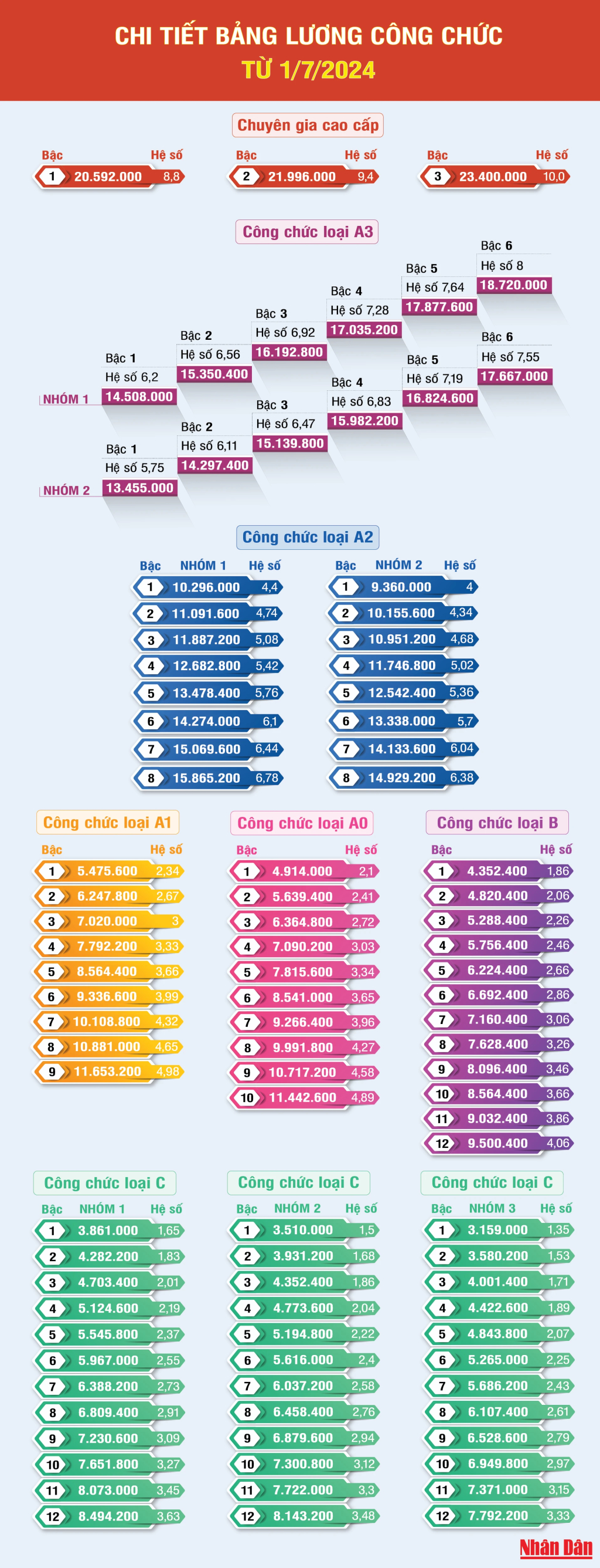 [Infographic] Chi tiết bảng lương công chức từ 1/7/2024
