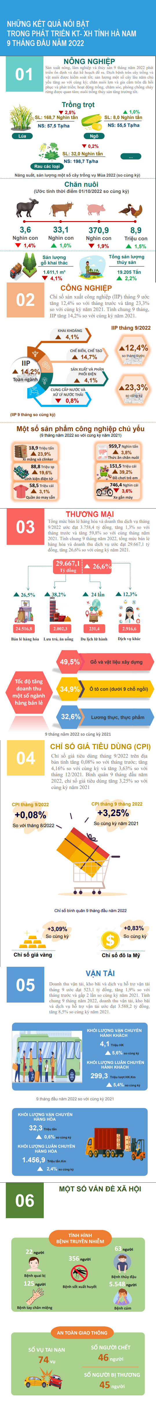 [Infographic] Kinh tế - Xã hội Hà Nam 9 tháng đầu năm 2022 qua các con số