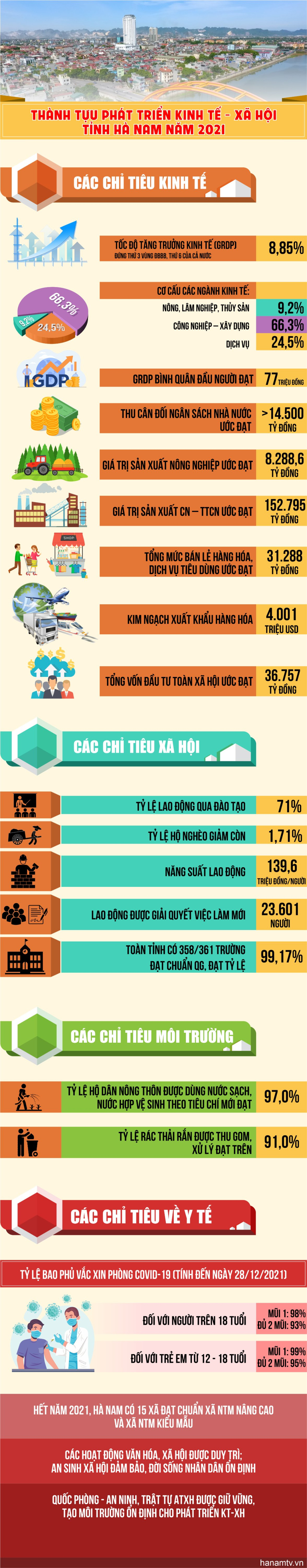 [Infographics] - Thành tựu phát triển kinh tế - xã hội tỉnh Hà Nam năm 2021