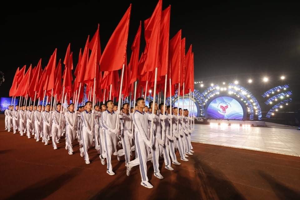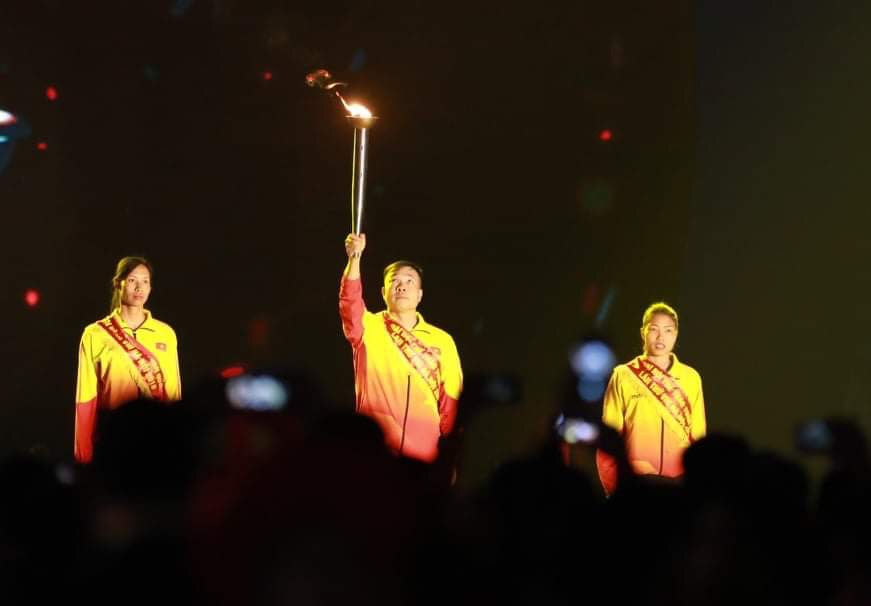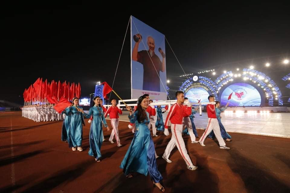 Tiếp đó, Phó Thủ tướng, các đồng chí lãnh đạo Đảng, Nhà nước cùng hàng chục nghìn vận động viên, khán giả có mặt tại buổi lễ cùng hô vang khẩu hiệu đã vang vọng từ hàng chục năm trước, khi đất nước đang còn rất nhiều khó khăn gian khổ: Rèn luyện thân thể - Bảo vệ Tổ quốc! Rèn luyện thân thể - Kiến thiết đất nước! Thể dục - Khỏe!