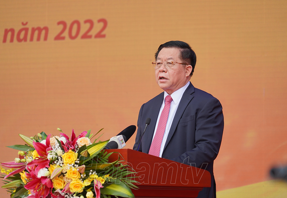 Đồng chí Nguyễn Trọng Nghĩa, Bí thư Trung ương Đảng, Trưởng Ban Tuyên giáo Trung ương phát biểu tại lễ khai mạc.