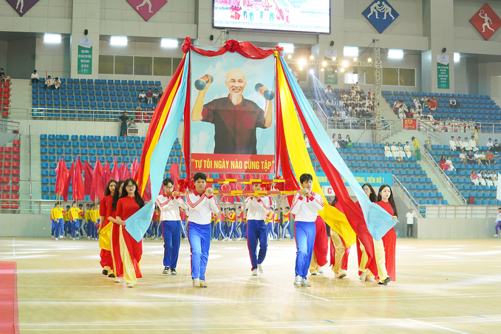 Đoàn rước kiệu Bác Hồ - vị cha già dân tộc, vị lãnh tụ kính yêu của Cách mạng Việt Nam diễu hành qua lễ đài.Khối hồng kỳ diễu hành qua lễ đài - Sắc cờ hồng phấp phới tung bay, làm không khí ngày hội thêm trẻ trung, khỏe khoắn.Các VĐV hân hoan, rạng rỡ chào mừng Ngày hội thể thao của tuổi trẻ học đường tỉnh Hà Nam lần thứ VII. Đoàn các VĐV đến từ các trường THPT và Phòng GD&ĐT các huyện, thị xã, thành phố diễu hành qua lễ đài.Các đại biểu và các VĐV làm lễ chào cờ.Đại diện các VĐV tham dự Hội khỏe Phù Đổng tỉnh Hà Nam lần thứ VII phát biểu hứa quyết tâm.Đại diện Đoàn trọng tài của Hội khỏe Phù Đổng tỉnh Hà Nam năm 2024 phát biểu tuyên thệ.Một số hình ảnh tại Chương trình đồng diễn nghệ thuật chào mừng Hội khỏe Phù Đổng tỉnh Hà Nam lần thứ VIIMột số hình ảnh tại Chương trình đồng diễn nghệ thuật chào mừng Hội khỏe Phù Đổng tỉnh Hà Nam lần thứ VII.
