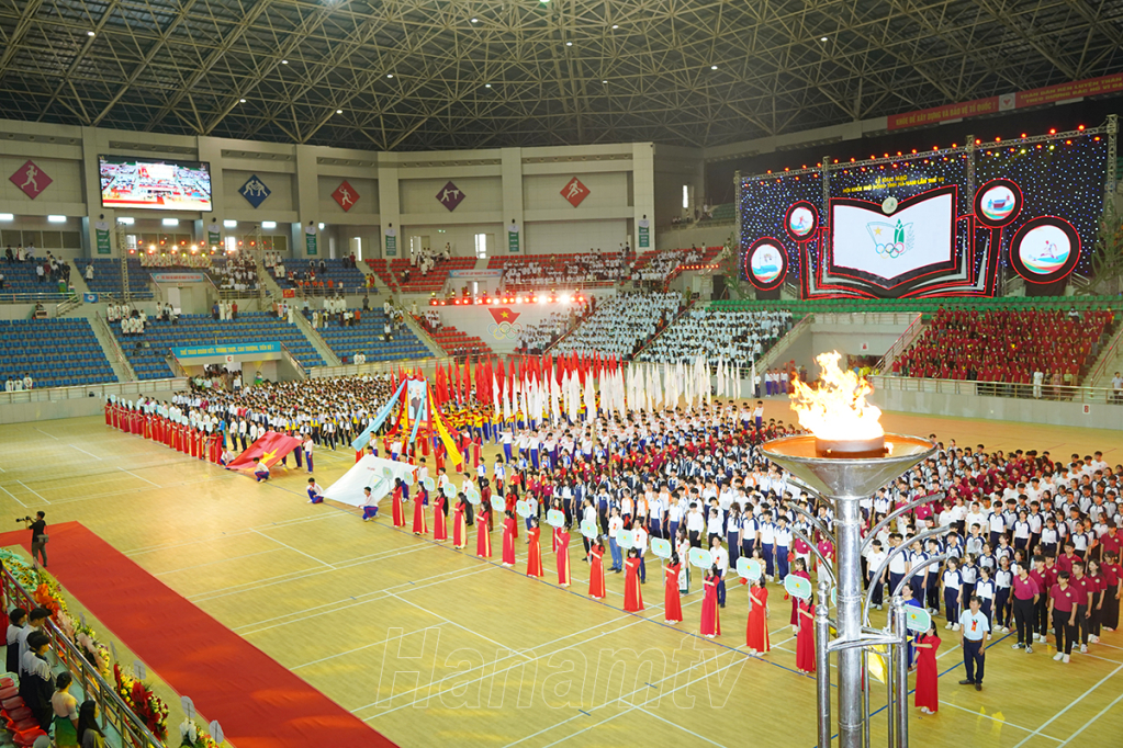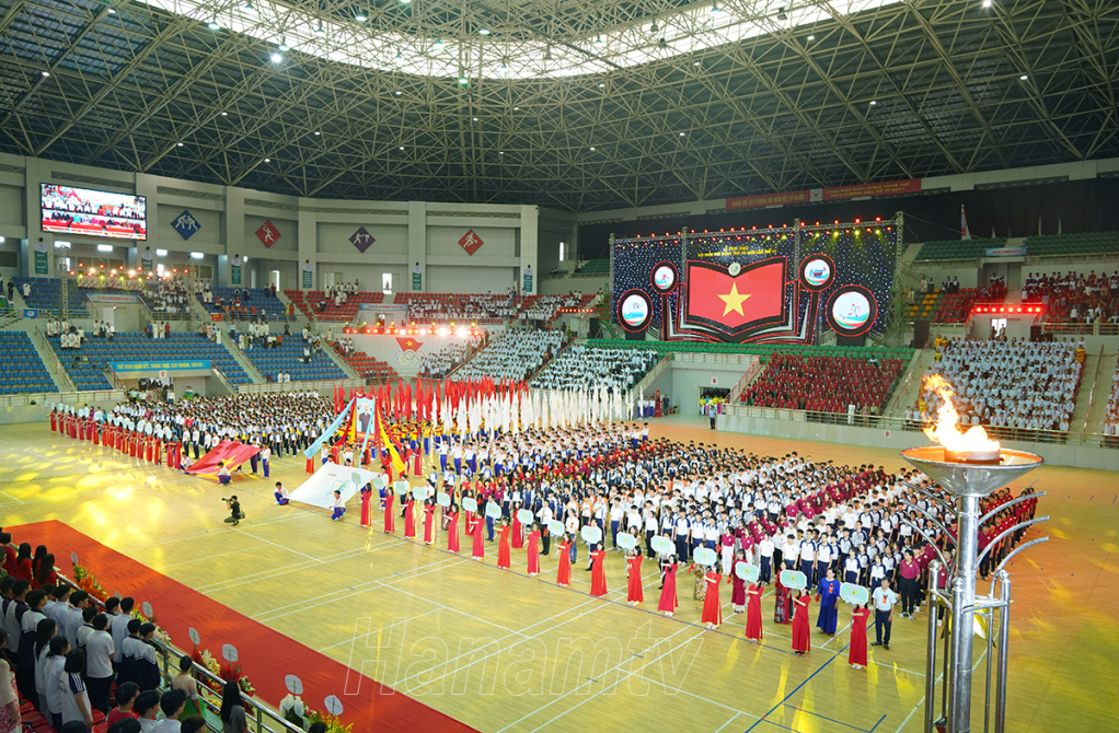 Trong khuôn khổ Lễ khai mạc, các đại biểu và khán giả đã theo dõi các màn trình diễn đặc sắc từ nghi thức rước cờ Tổ quốc, ảnh Bác Hồ, khối hồng kỳ và 31 đoàn với hơn 1.000 vận động viên của các Phòng GD&ĐT các huyện, thị xã, thành phố, các Trường THPT trong tỉnh và Đoàn trọng tài. Tiếp đó là nghi thức rước đuốc truyền thống Hội khỏe Phù Đổng. Ngọn lửa thiêng lấy từ Đền thờ các anh hùng, liệt sĩ tỉnh Hà Nam do 5 VĐV tiêu biểu của phong trào TDTT ngành Giáo dục tỉnh Hà Nam rước về Nhà thi đấu TDTT tỉnh và được đồng chí Bí thư Tỉnh ủy, Chủ tịch HĐND tỉnh thắp vào Đài lửa của Hội khỏe Phù Đổng.