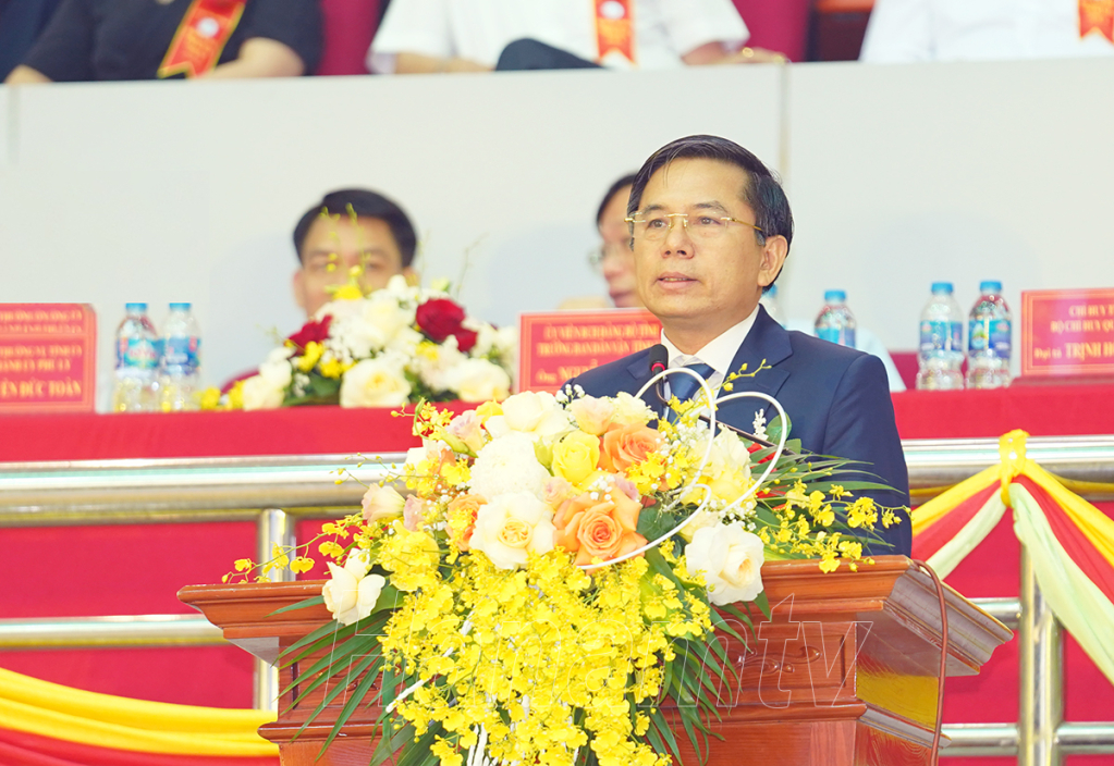 Đồng chí Trần Xuân Dưỡng, Tỉnh ủy viên, Phó Chủ tịch UBND tỉnh, Trưởng Ban chỉ đạo Hội khỏe Phù Đổng tỉnh Hà Nam lần thứ VII phát biểu khai mạc sự kiện.