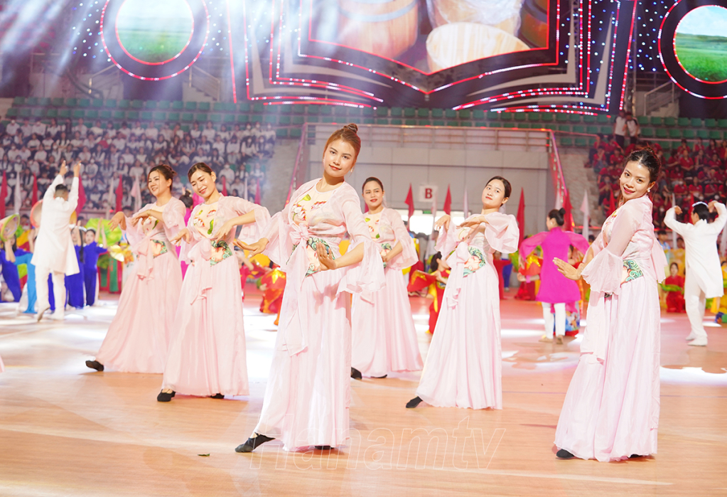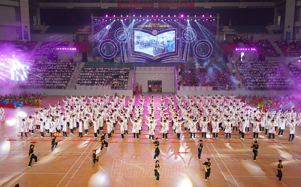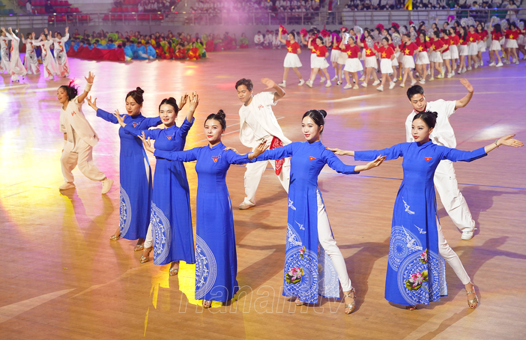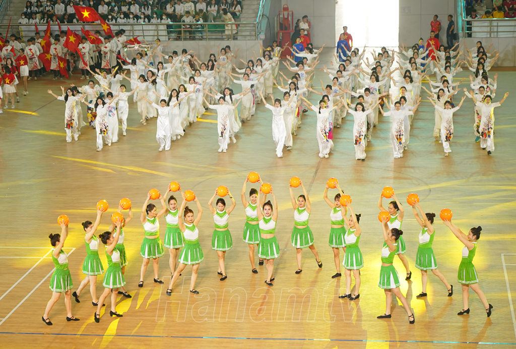 Điểm nhấn ấn tượng của lễ khai mạc chính là Chương trình đồng diễn nghệ thuật tổng hợp với chủ đề “Hà Nam sức trẻ - Khát vọng vươn cao” do gần 1.000 em học sinh đến từ các Trường THPT trong tỉnh, Phòng GD&ĐT Thành phố Phủ Lý, Trung tâm VHNT tỉnh biểu diễn, gồm các chương: Rạng rỡ một miền quê, Hà Nam trên đường đổi mới, Hà Nam khát vọng vươn cao.