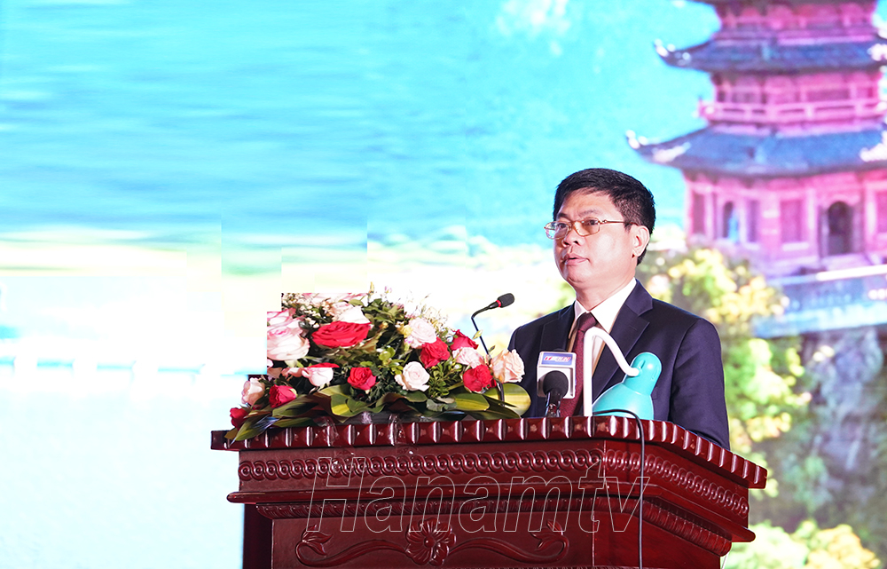 Phát biểu khai mạc, đồng chí Chủ tịch UBND tỉnh Trương Quốc Huy khẳng định, Hà Nam có nhiều tiềm năng để phát triển các loại hình du lịch văn hóa, tâm linh, du lịch sinh thái, nghỉ dưỡng với những những di sản tiêu biểu như: Đền Trần Thương, Đền Lảnh Giang, Chùa Đọi và không gian lễ hội Tịch Điền, chùa Địa Tạng Phi Lai, Ngũ Động Sơn, Hồ Ba Hang, Bát Cảnh Sơn... Du lịch thể thao với 02 sân golf đẹp, hiện đại là sân gofl Kim Bảng và sân golf Legend Valley, du lịch làng nghề với nhiều sản phẩm đặc sắc như làng nghề trống Đọi Tam, dệt Nha Xá, gốm Quyết Thành, mây giang đan Ngọc Động, sừng mỹ nghệ Đô Hai.
