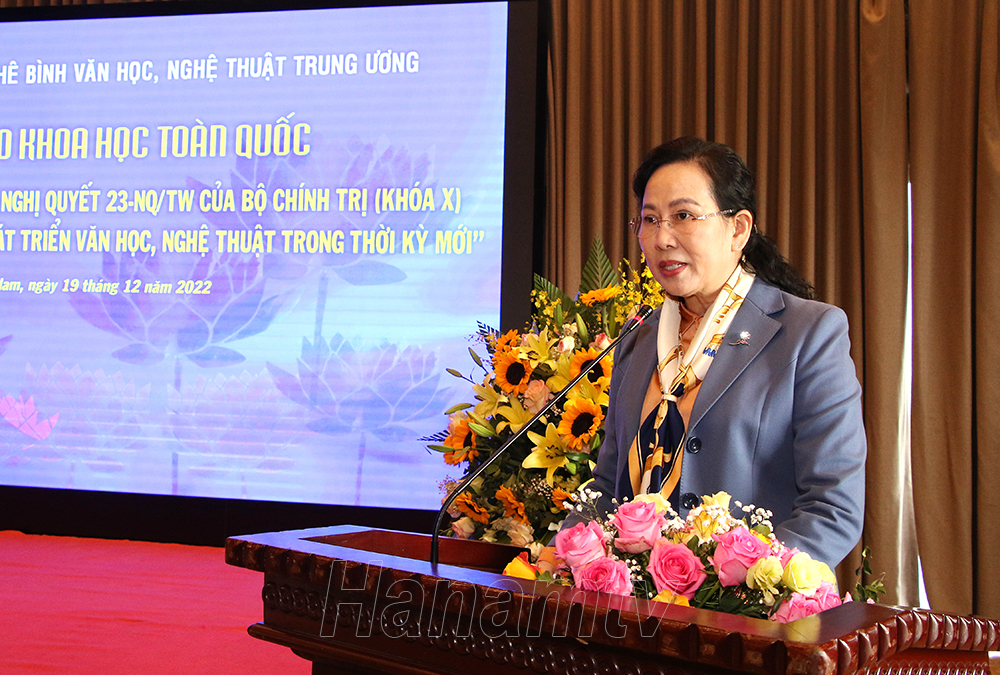 Tại hội thảo, đồng chị Lê Thị Thủy, Ủy viên Trung ương Đảng, Bí thư Tỉnh ủy Hà Nam giới thiệu những thành tựu, chính quyền của nhân dân Hà Nam thời gian qua. Theo đồng chí Lê Thị Thủy, cùng với phát triển kinh tế, Hà Nam còn phát triển văn hóa, con người. Đây là chìa khóa để Hà Nam phát triển vững mạnh hiện nay và thời gian tới. Hiện nay, Hà Nam đã cơ bản trở thành tỉnh công nghiệp theo hướng hiện đại và tự chủ ngân sách. Sự nghiệp văn hoá, VHNT đã đạt được nhiều kết quả; đã tổ chức thành công nhiều sự kiện văn hoá, văn học - nghệ thuật có quy mô lớn ở cấp quốc gia và quốc tế...
