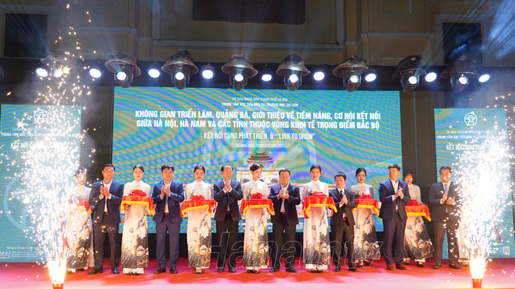 Không gian triển lãm, quảng bá, giới thiệu về tiềm năng, cơ hội kết nối giữa Hà Nội, Hà Nam và các tỉnh thuộc Vùng kinh tế trọng điểm Bắc Bộ - Kết nối cùng Phát triển - "Link to Grow” diễn ra từ ngày 27 - 30/12/2023 tại sảnh trước Nhà Văn hóa trung tâm tỉnh Hà Nam, đường Trần Phú, phường Quang Trung, thành phố Phủ Lý, tỉnh Hà Nam...