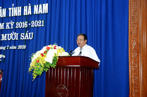 Báo cáo kết quả thực hiện nhiệm vụ phát triển KT-XH 6 tháng đầu năm, phương hướng nhiệm vụ phát triển KT-XH 6 tháng cuối năm 2020 của UBND tỉnh do đồng chí Nguyễn Xuân Đông, Chủ tịch UBND tỉnh trình bày tại kỳ họp khẳng định: 6 tháng đầu năm, trong bối cảnh chịu tác động của dịch bệnh Covid-19, việc triển khai các nhiệm vụ phát triển KT-XH của tỉnh gặp nhiều khó khăn. Trong bối cảnh đó, dưới sự chỉ đạo, điều hành quyết liệt của Trung ương Đảng, Chính Phủ; các giải pháp kịp thời của Tỉnh ủy, HĐND, UBND tỉnh, sự nỗ lực của các cấp, ngành, đoàn thể và các tầng lớp nhân dân, Hà Nam đã thực hiện thắng lợi mục tiêu kép là: vừa kiểm soát, khống chế cơ bản thành công đại dịch Covid-19, bảo đảm an toàn sức khỏe, tính mạng của người dân; vừa tổ chức thực hiện thắng lợi nhiệm vụ KTXH. 18/27 chỉ tiêu quan trọng vẫn đảm bảo đạt kế hoạch năm và tăng so với cùng kỳ năm 2019.