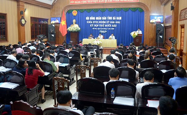 Kỳ họp nghe các báo cáo và tờ trình dự thảo Nghị quyết Kỳ họp đã nghe Sở Kế hoạch và Đầu tư trình bày báo cáo chuyên đề về đánh giá kết quả thực hiện kế hoạch đầu tư công trung hạn giai đoạn 2016 - 2020, phương hướng giai đoạn 2021 - 2025; nghe tờ trình về việc ban hành Nghị quyết về kết quả phối hợp giải quyết những vấn đề phát sinh giữa 2 kỳ họp; tờ trình về ban hành Nghị quyết về nhiệm vụ phát triển KTXH 6 tháng cuối năm; về ban hành Nghị quyết điều chỉnh kế hoạch đầu tư công trung hạn giai đoạn 2016 - 2020; về việc ban hành Nghị quyết quy định chính sách khuyến khích DN đầu tư vào nông nghiệp, nông thôn; về việc giao UBND tỉnh quyết định chủ trương đầu tư một số dự án đầu tư công do tỉnh quản lý; tờ trình về ban hành Nghị quyết chủ trương bố trí Ngân sách địa phương đầu tư phần kinh phí bổ sung do điều chỉnh đề án xây dựng các trạm bơm đầu mối khu vực thành phố Phủ Lý; nghe tờ trình về việc ban hành Nghị quyết về chủ trương đầu tư Dự án xây dựng Khu trụ sở cơ quan hành chính huyện Thanh Liêm theo hình thức hợp đồng xây dựng - chuyển giao - thuê dịch vụ (BTL).