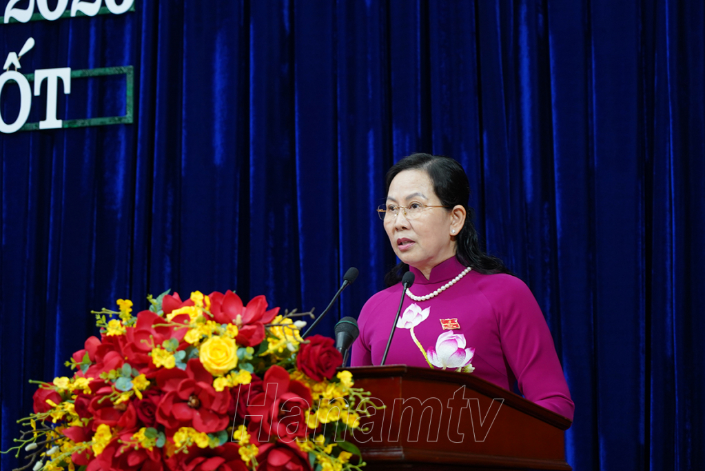 Đồng chí Lê Thị Thủy, Ủy viên Trung ương Đảng, Bí thư Tỉnh ủy, Chủ tịch HĐND tỉnh phát biểu khai mạc Kỳ họp.