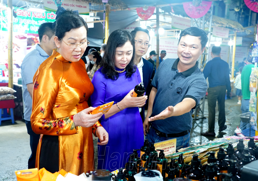 Điểm nhấn tại Tuần lễ là không gian trưng bày của 50 gian hàng quảng bá, giới thiệu các sản phẩm OCOP đạt từ 3 đến 5 sao, đặc sản, nông sản an toàn của tỉnh Hà Nam và 17 tỉnh, thành phố lân cận. Mỗi tỉnh, thành tham gia trưng bày, triển lãm các sản phẩm OCOP, sản phẩm đặc trưng vùng, miền được thiết kế theo đặc trưng văn hóa của từng vùng, từng địa phương.