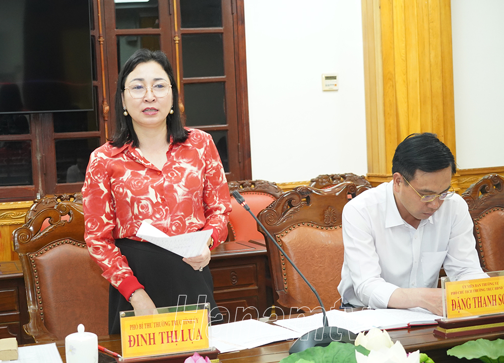 Đồng chí Đinh Thị Lụa, Phó Bí thư Thường trực Tỉnh ủy phát biểu tại hội nghị.