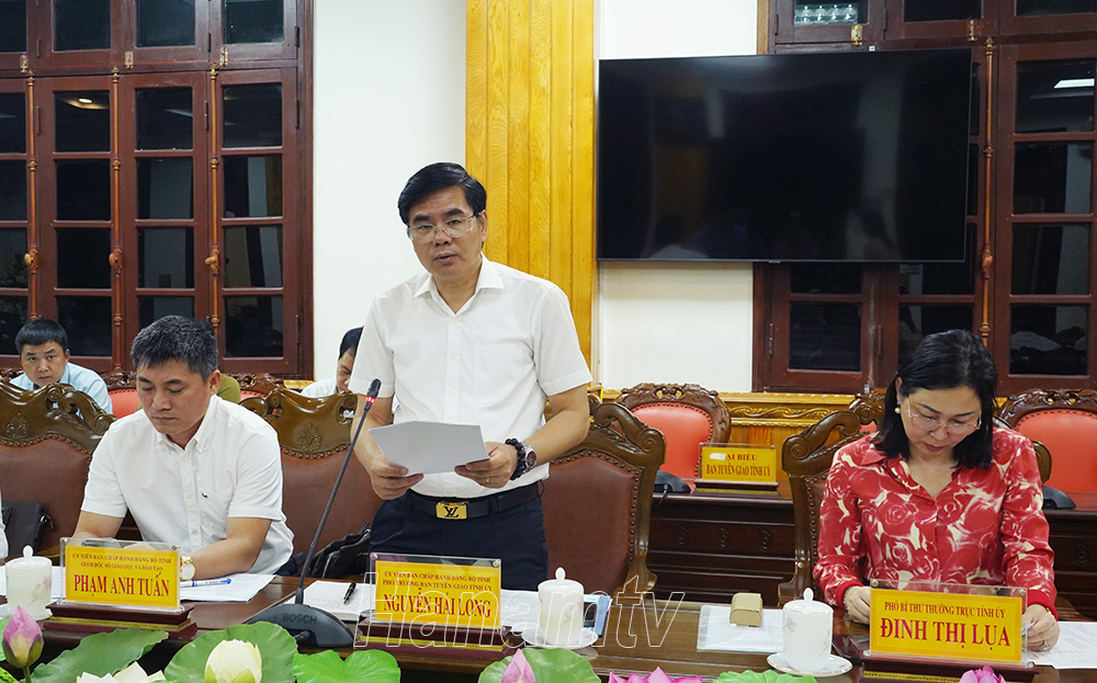 Đồng chí Nguyễn Hải Long, Tỉnh ủy viên, Phó trưởng Ban Tuyên giáo Tỉnh ủy trình bày báo cáo tại hội nghị.